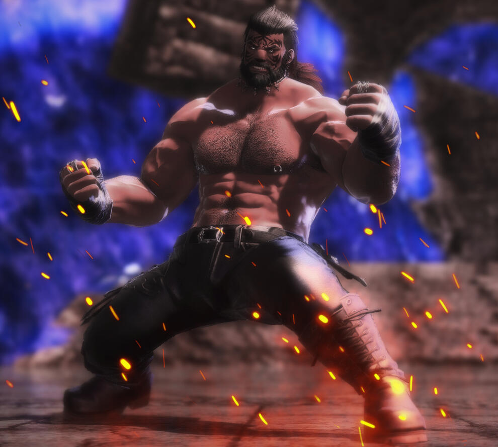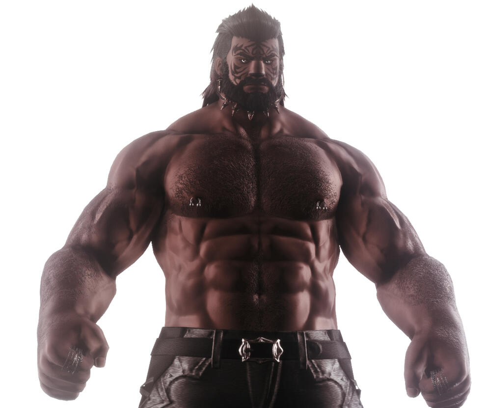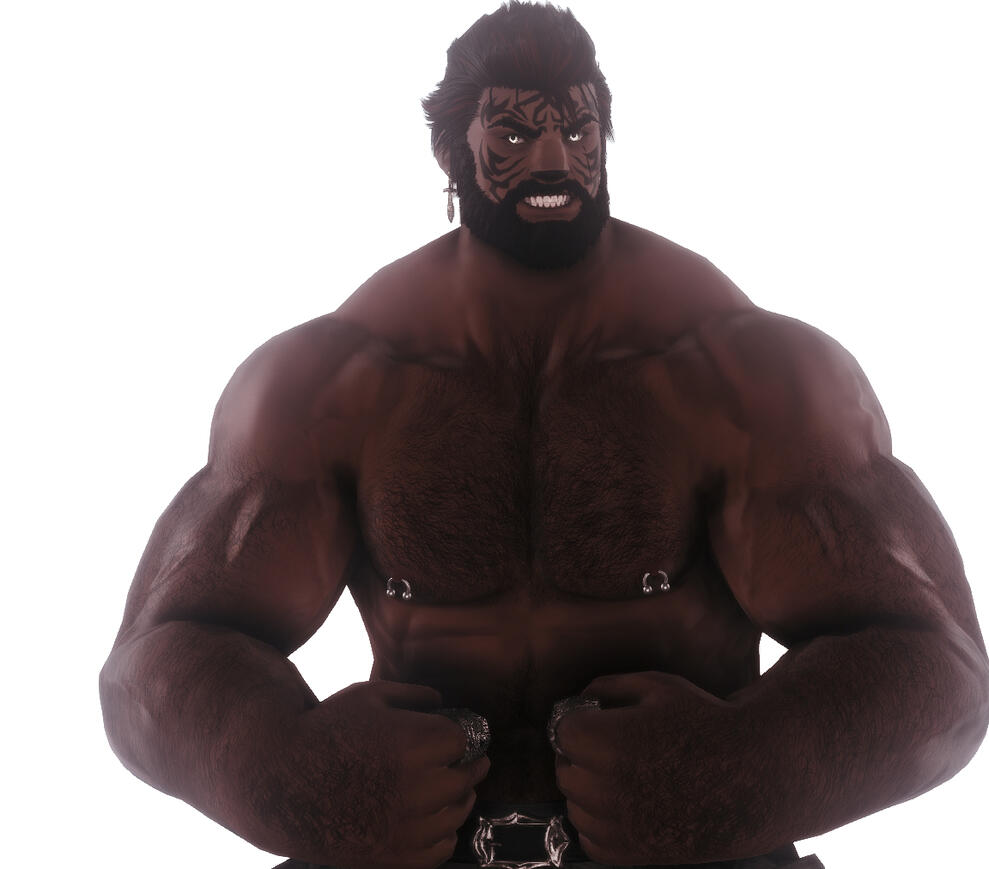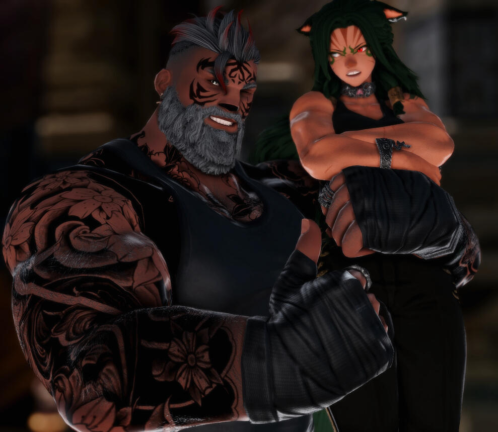 Hanmā no katamari was born from the locals mixing the name his mother gave to him and the name the locals grew to address him as.The name Mr. Chunk is from a misunderstanding from people calling him as such for whatever reason, eventually it just stuck. He doesn't like being called Mr. but sometimes you gotta roll with it.Weight: Somewhere around the area of 600 plus pounds. His muscles are huge and are not the result simply working out, but years upon years of fighting and working out in the world and eating absurd amounts of food. Boy does this man eat, hide your lasagna or suffer a shortage.Orientation: Straight. Doesn't give a crap about yours, that's your business not his.Relationship status: SingleHe has an adopted son Romura and two children with his ex-partner Divya De'ilja. Do due circumstances, he visits them when he can and does not have a hand in raising them.(If you desire to be involved with Chunk you can either do it via ingame through rp or contact me at [TheRubberDucky/therubberducky] on discord)Notables:- Severely scarred body and face like any long lived warrior or merc, from decades of wandering Eorzea, battles and constants fisticuffs.- Thick Graying hair on his head, with natural red streaks in it, big 'ol beard. Similarly thick body hair, he's a hairy lad.- Silver eyes, they shine but only in lowlight conditions.- Chunk puts minimal care into his presentation and appearance. He won't go out of his way to impress people with his looks and only does it for himself if he does. Others don't put food on his table, he does that himself.- He likes to antagonize and taunt people, usually for shits and giggles and rarely maliciously. He likes puns and corny jokes. He finds farting in a crowded room to be hilarious.- Overwhelming presence and stature. Chunk is genetically gifted, being taller than the average roe with thicker bones and thicker, denser muscles. In combination with his lifelong training up to the Present and workout regimen alongside his voracious appetite he manages to keep a girthy size and defined musculature.- Hasn't been sober in decades if he says he hasn't drank, he's lying.- A lifelong bouncer, he's seen it all, and has worked every kind of joint you can think of.- Relationships: If it happens, then it happens. He cares little for the idea of going out of his way to find someone who would mean something more to him. Do not think that he is trying to get into your pants just because he lightly flirts with you, he could care less and if he were that in need of it, he'd find a brothel. Go with the flow he'd say, despite this he does have a slight preference for viera.- While he has no problems discussing his past or family or what he does in his spare time. Those he has told could notice it's the same simple story with variations here and there but it all seems so rather simple does it not?. In truth it's a blanket to cover things he has done over the years, this man has a lot of blood on his hands and is no saint.- He likes to fight, a lot. He doesn't need a reason to fight you only a yes or a no will do, and he constant frequents many fight venues. He finds anyone who needs a reason to fight to be pretentious and full of themselves, why walk around in armor and carry lots of weaponry, talk big, talk shit, if you are not ready to show you can use them and back up your attitude at any moments notice?- Will do a job if money if placed in front of him with little questions, unless the job includes questionable morality.- Can throw or punt Lalafel a very far distance, just don't ask how he found out.- Aetherical resistance: What makes Chunk such a difficult opponent is not only his large size and natural toughness, but also his ability to essentially 'tank' magical attacks and the like. He is not immune to these things rather his resistance allows him to him to take the damage over time as it were. However this goes both ways, he equally resistant to supporting magic and healing, meaning he takes far, far longer to be healed through magical means. Chunk is aware of this, but he does not know how or why he is like this.- Due to a job he did wherein he almost died recovering an aetherical artifact in a cultist stronghold and some bullshittery involving voidsent magics, Chunk's beard is...not his own. Well it is 'his' beard but it's also not.. listen it's semi-sentient and he is in denial about it.- He has a semi-wild Jungle Couerl as a pet, while 9ft at the shoulder he considera her, named Anko, to be his wee baby.- Professions: Chunk has been trained by both rogue samurai and monks. Do not mistake this for being ill taught. While Chunk is no grandmaster of his crafts he is highly skilled, however finding out just how skilled this man is with his craft and abilities is near impossible as he fights he actively refuses to go out all in any fight, or situation unless he has no choice or he knows beforehand that it is needed.- Aether: Chunk has...well to be blunt massive amounts of aether/chakra. Much more than most people could feasibly maintain in thier body without it absolutely ripping them to shreds or consuming them. This had not always been the case, as he had normal levels growing up but the older he got the more aether/chakra he developed. This of course was never a good thing and more often than not attracted aether starved people or creatures to him. As a young adult like most people he gain too much aether/chakra he sought out to do something about it, however instead of looking for a outside vessel or releasing it here and there he sought out monks too be trained to be able to harness and control it, eventually creating two powerful seals (His earrings) to keep it in check. Once in a while other people are able to catch a glimpse of what he has hidden away, and to those that have Aether sight, he looks like a raging bolt of lighting contained within the body of a Roe.-Of course with such reserves of aether/chakra at his disposal he his capable of ver